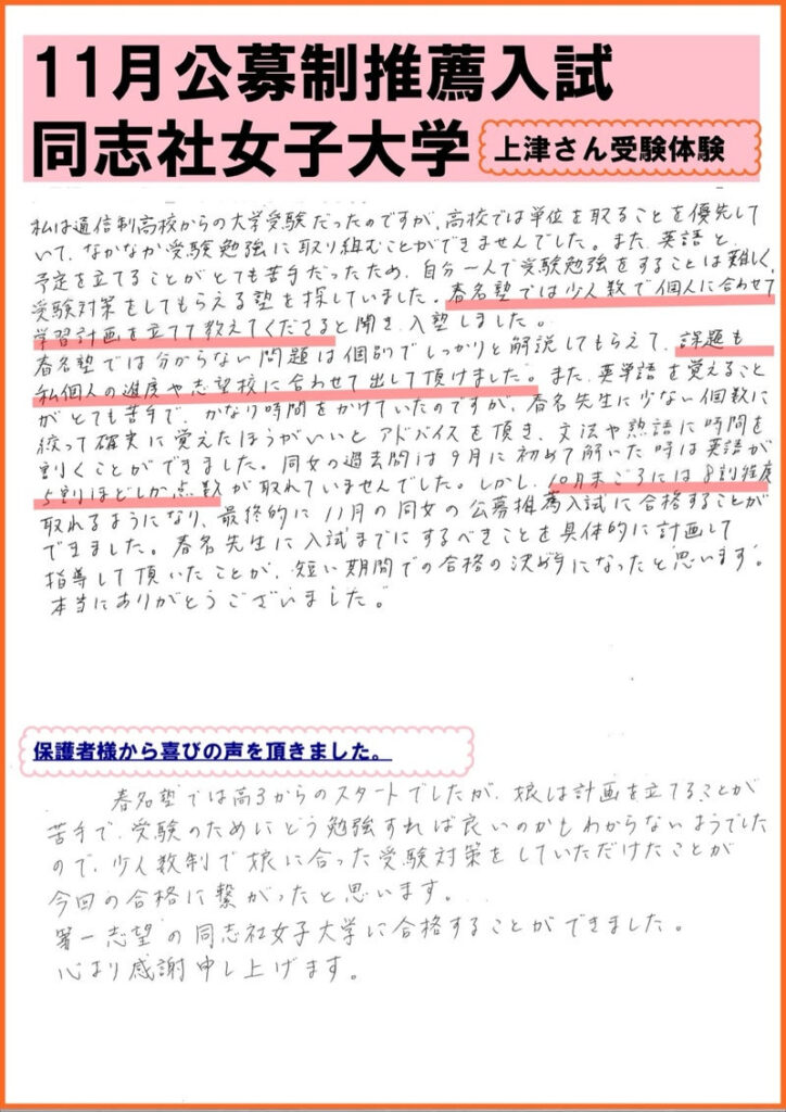 同志社女子大学(公募制推薦)合格