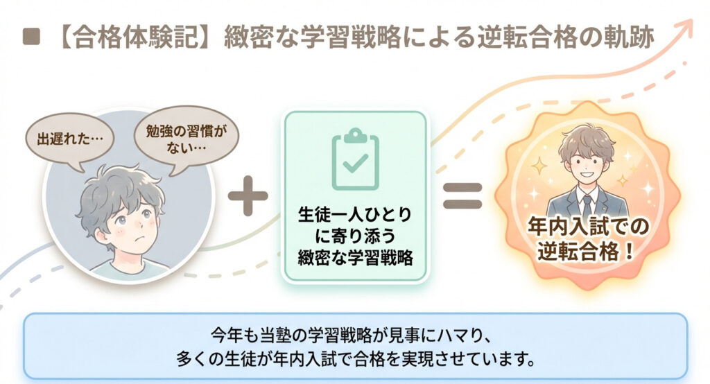 今年も当塾の学習戦略が見事にハマり、多くの生徒が年内入試で合格を実現させています。