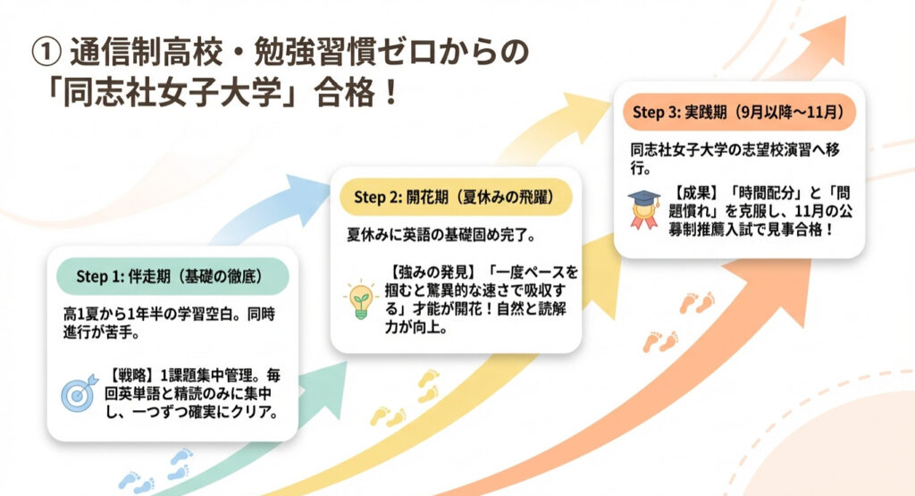 ① 通信制高校・勉強習慣ゼロからの「同志社女子大学」合格!